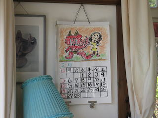 書斎のカレンダーが2月になっています。節分の絵になっていました。